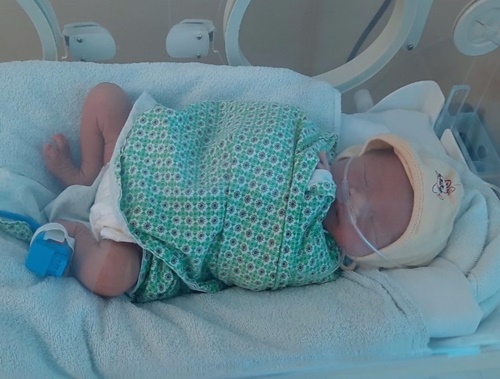 Vừa qua, khoa Sơ sinh, bệnh viện Đa khoa Đức Giang (Hà Nội) tiếp nhận một bé trai mới 38 giờ tuổi, sinh non khoảng 35-36 tuần trong tình trạng da tím tái, suy hô hấp, thân nhiệt 35 độ, nặng 1,9kg.