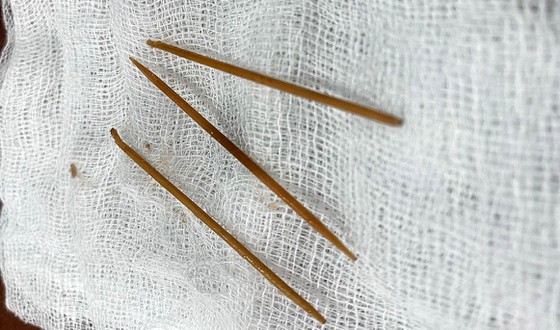 3 cây tăm tre được các bác sĩ gắp ra thành công. (Ảnh: BV) |