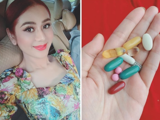 Cụ thể, Lâm Khánh Chi chia sẻ: "Sáng sớm của em đây, ngày nào cũng thế. Sức khỏe càng ngày càng yếu". Theo đó, nữ ca sĩ phải uống 2 viên trắng da, 2 viên hormone, 1 viên giảm mỡ trong máu, 1 viên vitamin, 1 viên sâm, 1 viên thần tiên tỷ tỷ, 1 viên sữa ong chúa, 1 viên mega 3.