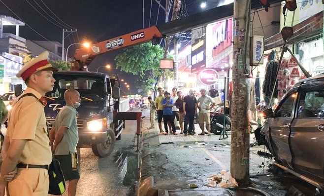 Xế hộp sau đó lao lên vỉa hè tông gãy một cây xanh và lao vào 2 cửa hàng kinh doanh. Vụ tai nạn khiến 2 người bị thương.