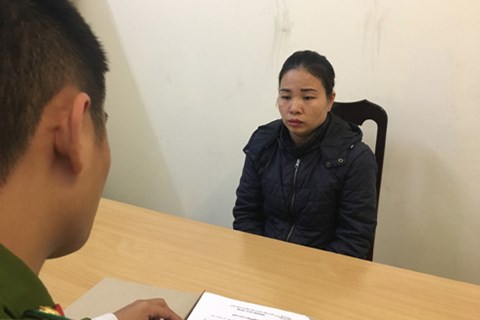Lê Thị Hòa tại cơ quan điều tra - Ảnh: báo ANTĐ |