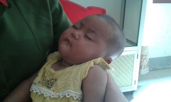 Cháu bé đang được các chiến sỹ Công an huyện Diễn Châu chăm sóc, nuôi dưỡng và tìm bố mẹ cho cháu bé. |