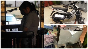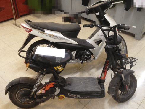 Chiếc xe máy Minh chở Hoan đi trộm cắp cùng tang vật là chiếc xe đạp điện GIANT - Ảnh: báo ANTĐ |