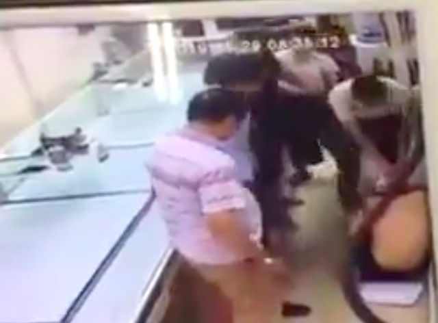 Phát hiện sự việc, nhóm người trong tiệm vàng đã nhanh chóng quây bắt kẻ cướp.