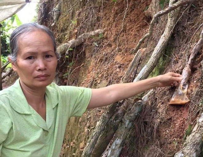 Bà Cơ khai nhận, khoảng 1 tháng trước, bà mua chai thuốc diệt cỏ rồi đổ thuốc vào bịch ni lông; sau đó buộc vào rễ cây thông thòng xuống phía dưới bờ ta luy, mục đích làm cho thông chết.