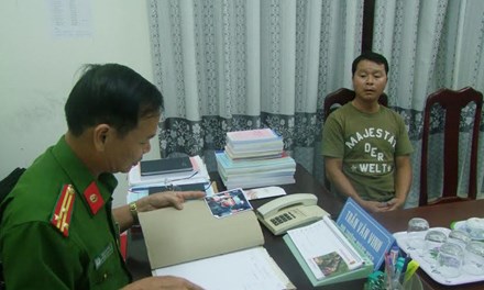 Đinh Văn Khiêm tại cơ quan công an - Ảnh: báo Tiền Phong