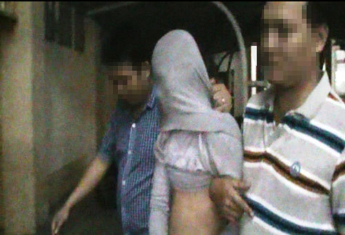 Nghi phạm Nhơn (người trùm mặt) bị cơ quan công an dẫn giải về trụ sở - Ảnh: báo Dân Việt |