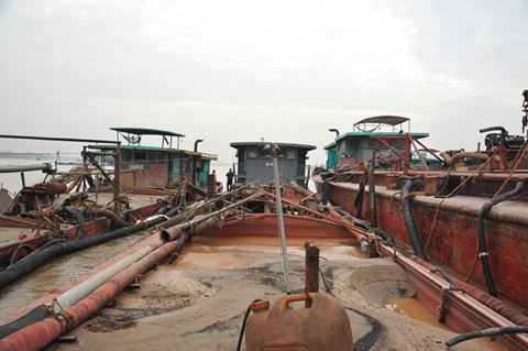 Bắt quả tang 5 tàu khai thác cát trái phép tại ngã ba sông