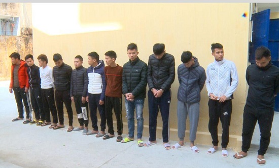 12 đối tượng bị cơ quan Công an huyện Thọ Xuân bắt giữ. Ảnh: Giao Thông |