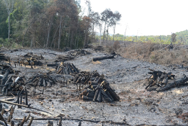 | Hiện trường vụ phá rừng quy mô lớn có sự tiếp tay, nhận hối lộ của Trạm phó - Ảnh: Dân trí |