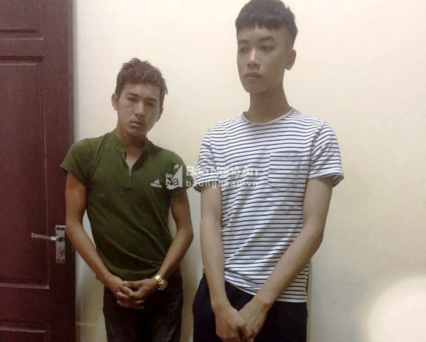 Hai nghi phạm tại cơ quan công an. Ảnh: Báo Nghệ An. |