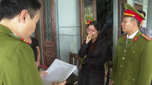 Đối tượng Nguyễn Thị Thanh Hải bật khóc khi bị khởi tố. Ảnh: CA |