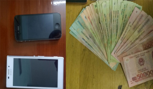 Tang vật thu được là 14 triệu đồng cùng 2 điện thoại |