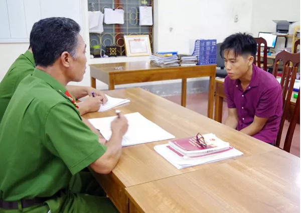 Nghi phạm Giàng Mí Tỉnh tại cơ quan công an - Ảnh: Báo Hà Giang |