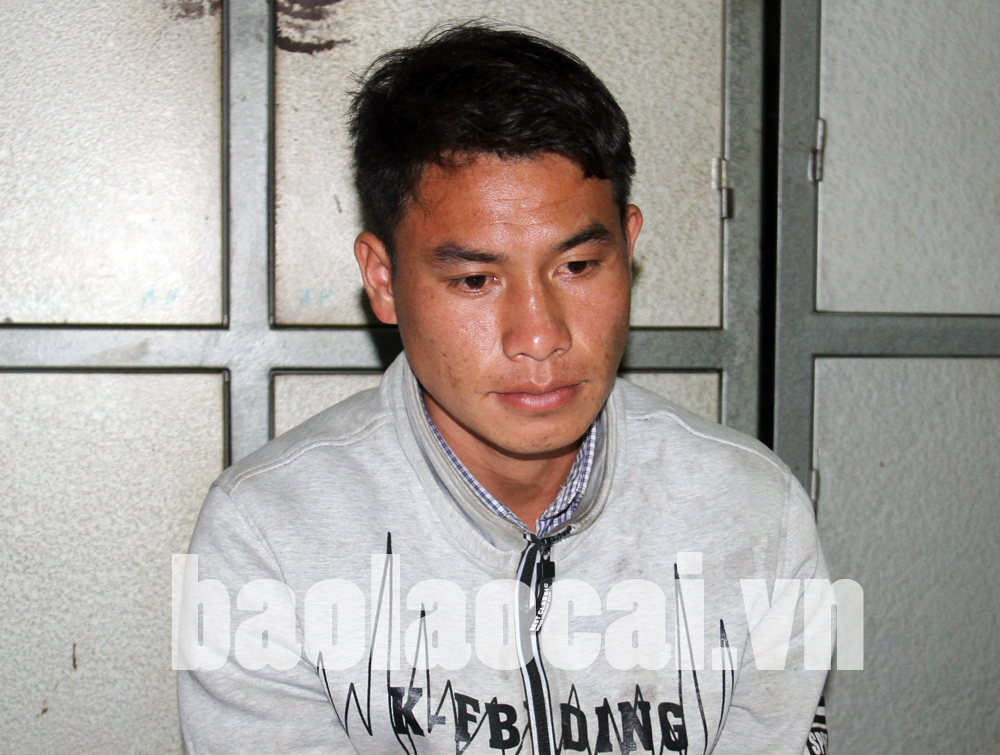 Đối tượng Lý Láo Lủ tại cơ quan công an. Ảnh: Báo Lào Cai |