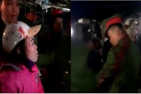 Tại đây, giữa những người dân và đoàn liên ngành có xảy ra xích mích. Trong lúc bức xúc, có nhóm người lấy tiết lợn hắt trúng người chủ tịch huyện và cán bộ công an huyện.