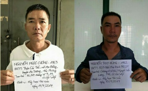 Hai đối tượng Cương và Hùng bị bắt tại cơ quan công an - Ảnh: báo Người đưa tin |