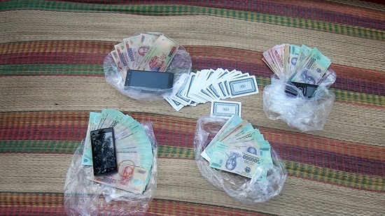 Tại hiện trường, lực lượng làm nhiệm vụ thu giữ trên chiếu bạc và trong người các đối tượng 66,4 triệu đồng, 1 bộ bài tây 49 lá và 7 điện thoại di động các loại.