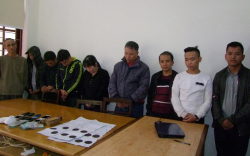 Nhóm đối tượng bị bắt giữ bao gồm: Nguyễn Duy An (30 tuổi), Phạm Ngọc Thuỷ (41 tuổi), Nguyễn Huy Tài (23 tuổi), Hoàng Văn Dương (17 tuổi) cùng trú tại huyện Thường Xuân; Phạm Thị Nhung (44 tuổi), Lê Văn Hẹn (46 tuổi), Triệu Thị Thìn (41 tuổi) cùng trú tại huyện Ngọc Lặc và Lê Ngọc Sơn (33 tuổi), Hoàng Đình Bảy (57 tuổi), Bùi Đức Thọ (44 tuổi) cùng trú tại huyện Thọ Xuân.