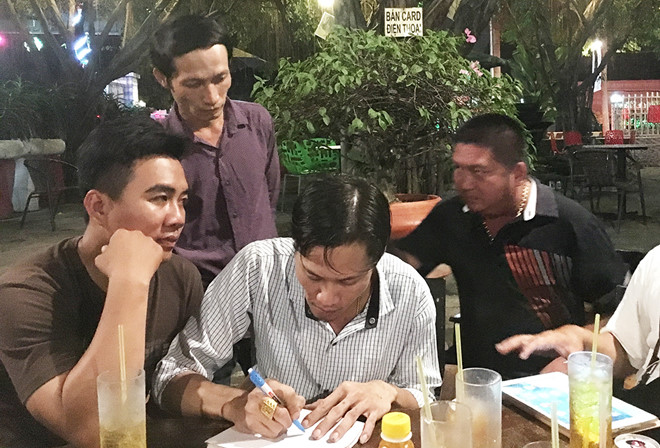 Nghi can Nguyễn Văn Lớp (áo sáng màu) đang viết tường trình vụ việc - Ảnh: Tri thức trực tuyến |