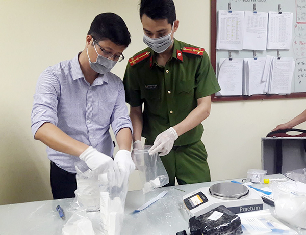Cơ quan Công an giám định tang vật thu giữ. Ảnh: Báo Công an Nhân dân. |