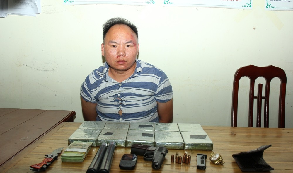 Qua khám xét, lực lượng công an phát hiện trên xe ô tô của đối tượng có 10 bánh heroin được giấu ở ghế phụ; 1khẩu súng quân dụng K59; 8 viện đạn; 1 dao găm; 1 côn nhị khúc và 16 triệu đồng.