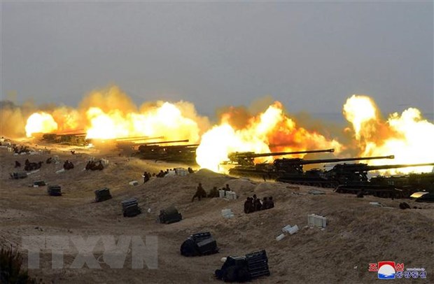 Một cuộc diễn tập pháo binh của quân đội Triều Tiên. Ảnh: TTXVN |