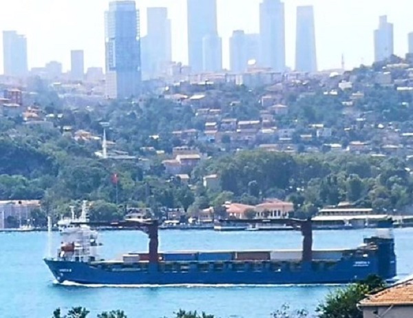 Tàu Roro Sparta II chở vũ khí tới Syria đã đi qua eo biển Bosphorus trong tuần này. Ảnh: Twitter. |