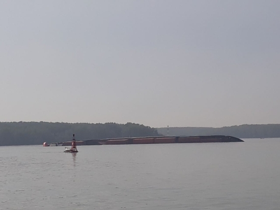 Tàu chở hàng 8.000 tấn bị chìm trên sông. Ảnh: Biên Phòng |