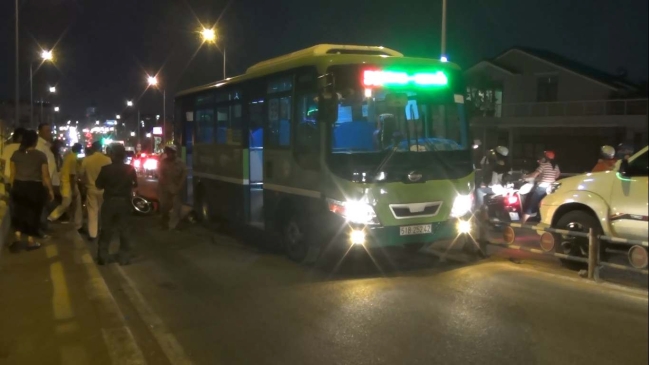 Tại hiện trường, thi thể nạn nhân nằm dưới gầm xe buýt. Vụ tai nạn thu hút rất đông người dân hiếu kỳ theo dõi khiến giao thông qua khu vực ùn tắc.