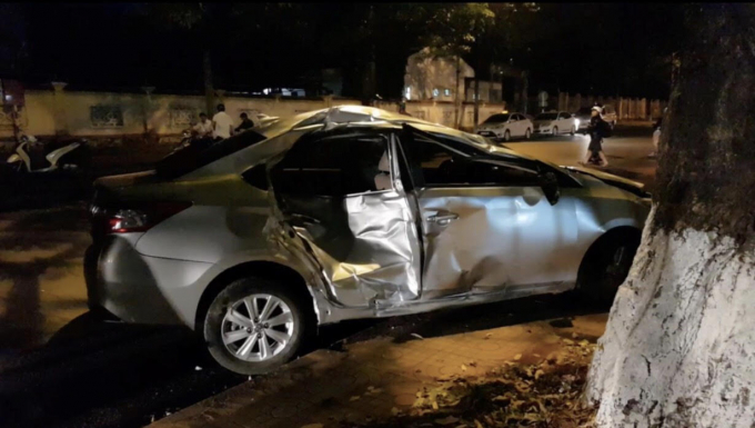 Chiếc ô tô bị hư hỏng nặng sau cú va chạm. Ảnh: Pháp Luật Plus |