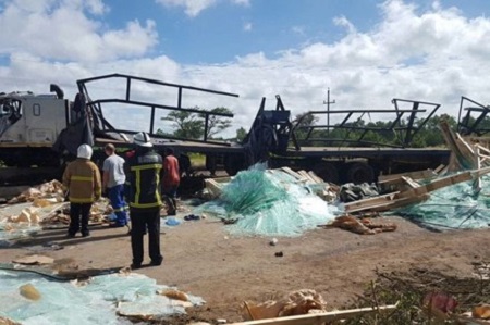 Theo Mirror, 5 người thoát chết trong vụ tai nạn kinh hoàng trong đó có tài xế xe tải. 3 người đã được đưa tới Bệnh viện United Bulawayo, 2 trong số đó đang nguy kịch.