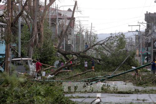 Cây cối bị gãy đổ do gió lớn trong bão Haima tại Tuguegarao, tỉnh Cagayan, Philippines ngày 20/10. Ảnh: THX/TTXVN |