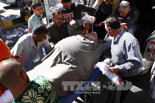 Chuyển nạn nhân bị thương sau vụ pháo kích tại Aleppo ngày 16/10. Ảnh: AFP/TTXVN |