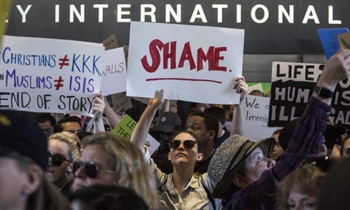 Người dân Mỹ biểu tình phản đối chính sách kiểm soát nhập cư của ông Trump. Ảnh: Latimes |