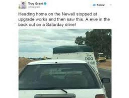 Trong lúc chờ đợi, Bộ trưởng Cảnh sát bang New South Wales rút điện thoại ra chụp hình một con cừu trên một chiếc xe ở đằng trước. Sau đó, ông Grant đăng tải bức hình lên mạng xã hội Twitter lúc về tới nhà.