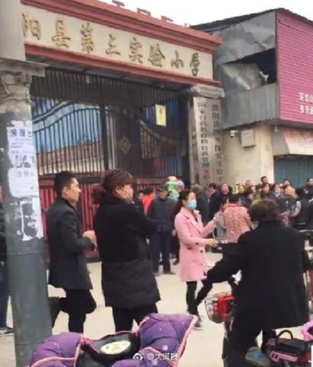 Phụ huynh học sinh đến trường sau khi biết tin. Ảnh: SINA |