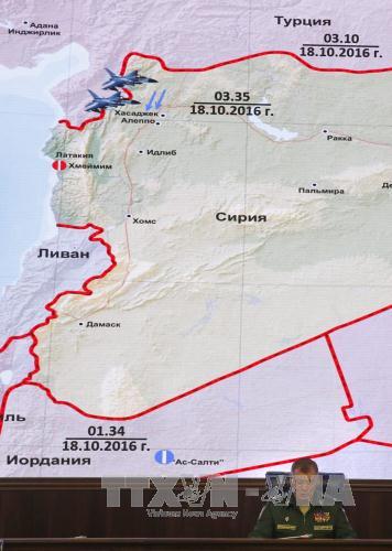 Thiếu tướng Igor Konashenkov tại cuộc họp báo ở Moskva ngày 20/10. - Ảnh: EPA/TTXVN |