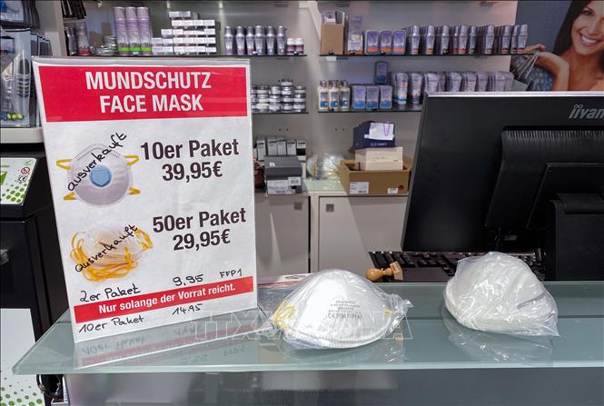 Một cửa hàng tại Berlin, Đức, thông báo "Hết hàng" khẩu trang trong bối cảnh bùng phát dịch Covid-19.Ảnh: AFP/ TTXVN |