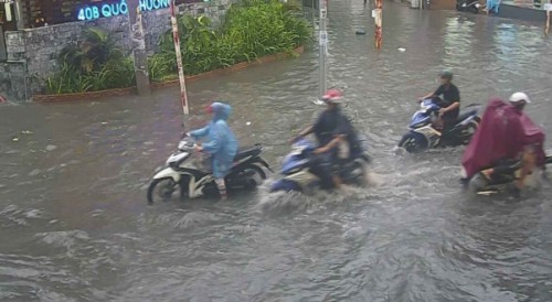 Một số tuyến đường như Tống Hữu Định (Quận 2), Nguyễn Hữu Cảnh (Bình Thạnh), Mai Thị Lựu (Quận 1)… do mưa lớn, nước thoát không kịp khiến người dân đi lại gặp không ít khó khăn.