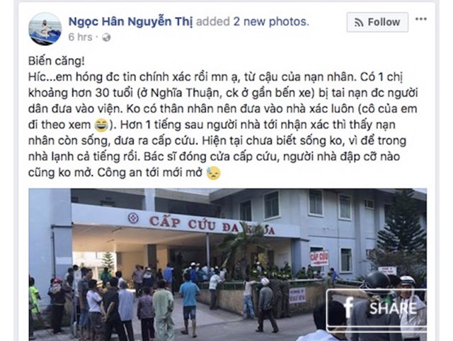 Báo Dân Việt dẫn lời ông Trần Cao Tánh-Phó giám đốc Sở TT&TT Quảng Ngãi cho biết, đơn vị đang phối hợp với cơ quan chức năng làm rõ hành vi vi phạm của người tung tin BVĐK tỉnh này "đưa người sống xuống nhà xác" lên Facebook, gây xôn xao dư luận vào ngày 5/10 vừa qua.