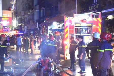 Nhiều người dân sống trong hẻm số 84 đường Bùi Viện (phường Phạm Ngũ Lão, quận 1) ngửi thấy mùi khét, kèm theo đó là ngọn lửa bùng cháy dữ dội từ một ngôi nhà nằm giữa con hẻm nên hô hoán nhau dập lửa.