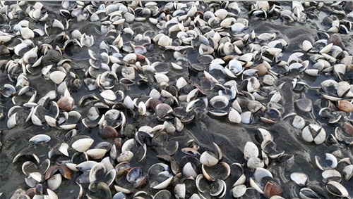 Nghêu chết trắng bãi - Ảnh: báo VietnamNet |