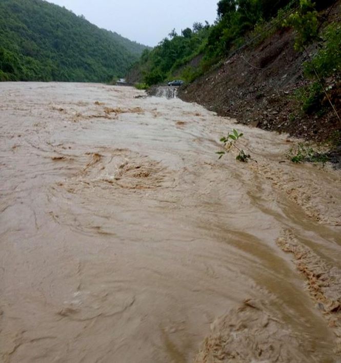 Mưa lớn ở Nghệ An khiến nước lũ dâng cao. Ảnh: Tiền Phong |