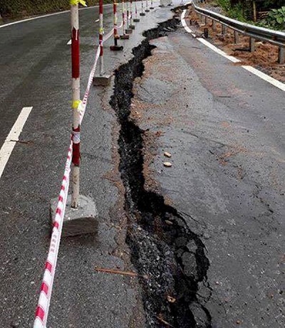 Xuất hiện vết nứt dài hơn 150m trên quốc lộ gần 2.000 tỷ sau mưa bão