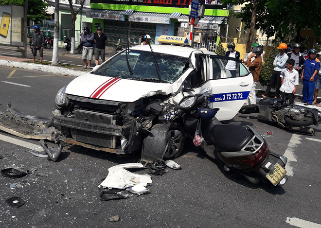 Chiều ngày 23/3, chiếc taxi đang di chuyển trên đường Ngũ Hành Sơn (hướng đi từ quận Ngũ Hành Sơn về cảng Tiên Sa (quận Sơn Trà, Đà Nẵng), bất ngờ tông vào đuôi một xe tải chạy cùng chiều.