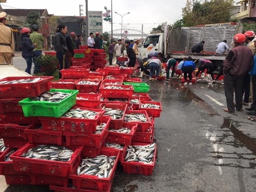 Người dân Hà Tĩnh gom hai tấn cá giúp tài xế bị lật xe