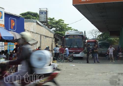 Nhiều xe khách đậu trong trạm xăng trên quốc lộ 1A |