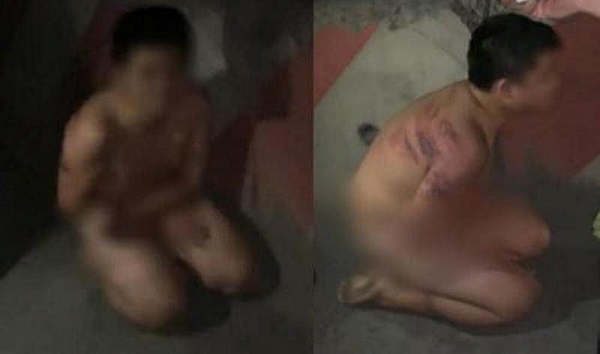 Cháu L. bị mẹ bắt cởi trần quỳ ngoài vỉa hè, Ảnh: Báo Giao thông |