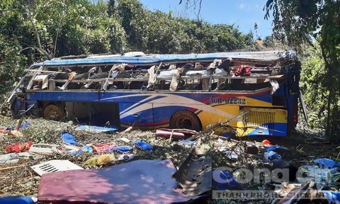 Thời điểm trên, xe ô tô BS 36B-022.32 do tài xế Mai Hải Nam (SN 1981, ngụ H.Ngọc Lặc, Thanh Hóa) điều khiển, xuất phát từ Thanh Hóa đi Đắk Lắk, trên xe chở theo 40 người (gồm 5 người nhà xe, hành khách có 26 người lớn và 9 trẻ em), khi đến địa điểm trên thì lao xuống vực sâu hơn 30m.